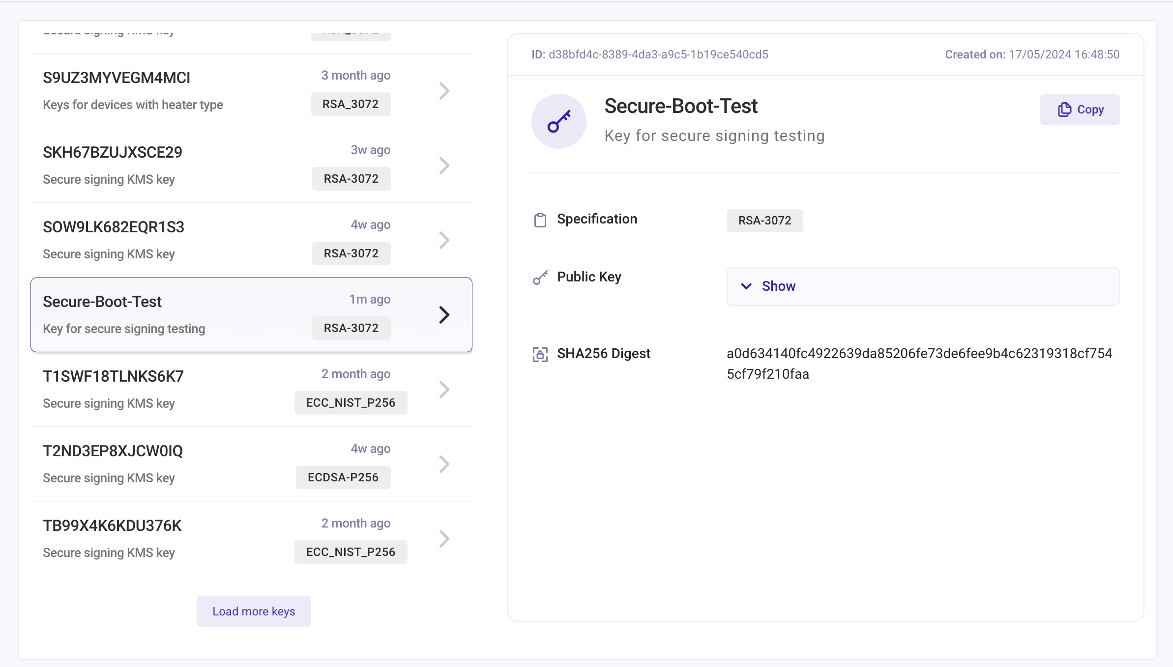 Once the key is generated, it will start showing in the list along with some additional details.